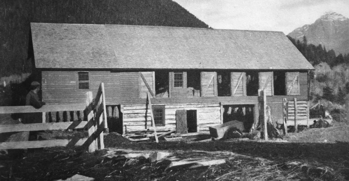 In most parts of the territory of Alaska barns were few and far between, but as roadhouses were built along the trails they found it profitable to provide barns for the stock which traveled the trails, and as people saw the potential of agriculture in the north and the land grew more settled, barns were built to shelter livestock and to store feed and valuable equipment.