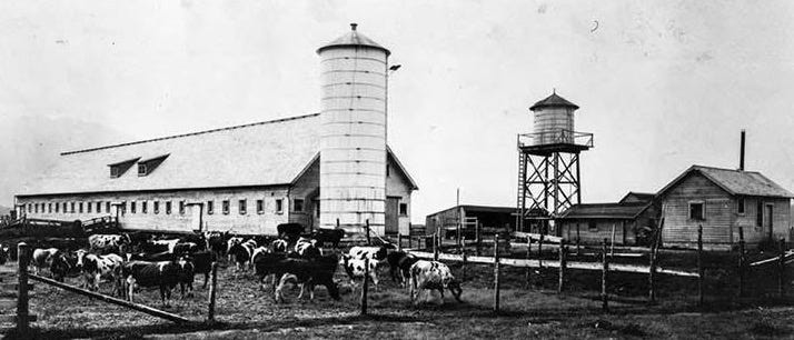 Returning to those great barns of the Agricultural Experiment Stations which sprang up across the territory, beginning in 1898 in Sitka, additional barns were built at Fairbanks, Kenai, Kodiak, Matanuska and several other sites.