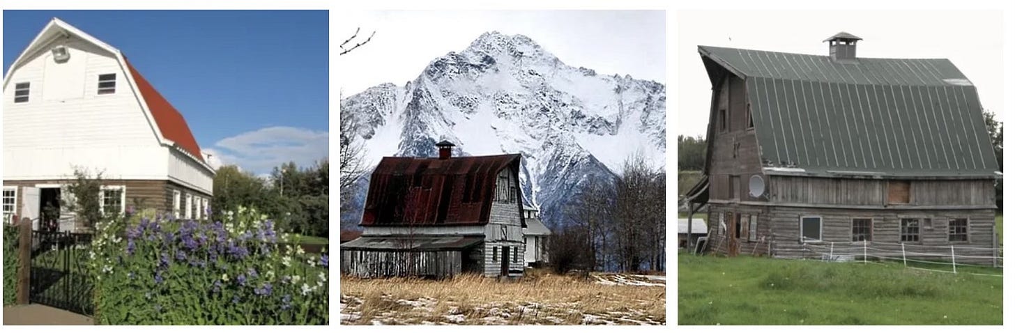 One of the first books published by Northern Light Media was The Matanuska Colony Barns: The Enduring Legacy of the 1935 Matanuska Colony Project, which shared the history of the stout square log-and-frame barns built for the 200 families who were transported north in 1935 as part of the Roosevelt administration’s New Deal. Nearly one hundred new communities were designed and developed by Roosevelt’s planners, but the largest, most expensive, and most audacious of them all was a government-sponsored farming community in Alaska’s Matanuska Valley. As part of each family’s farmstead a 36’ x 36’ x 36’ barn was built, mostly in the summer of 1936, and today around sixty of these iconic structures still dot the Valley near Palmer.