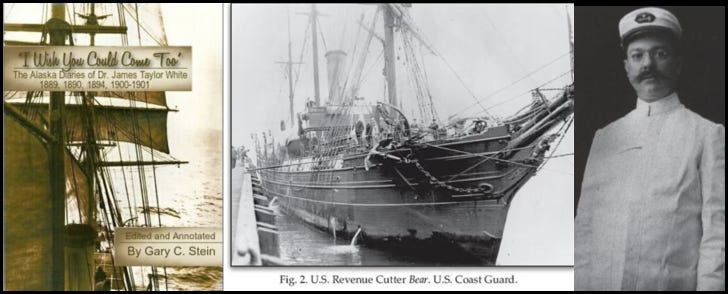 Another book which shares first-hand accounts and photographs is The Alaska Diaries of Dr. James Taylor White, 1889, 1890, 1894, 1900-1901, by Gary Stein, Ph.D., which provides a first-hand look at life aboard a revenue cutter during Alaska’s early years. More than simply a dry text about historic events, Dr. Stein’s book was the result of four decades of research, during which he developed an affinity for the good doctor, writing, “I met James T. White in 1980 while I was researching in the Alaska and Polar Regions Collections & Archives at the University of Alaska Fairbanks. We instantly became fast friends. He had been dead for sixty-eight years, but he let me pry into his life through his diaries, correspondence, scrapbooks, photographs, and natural history and ethnological collections located in various archives, museums and cemeteries in Alaska, Washington State, California, and Washington, D.C. We are friends still—I’ve even smoked a pipe with him at his grave—and there is a great deal of his life to share.”