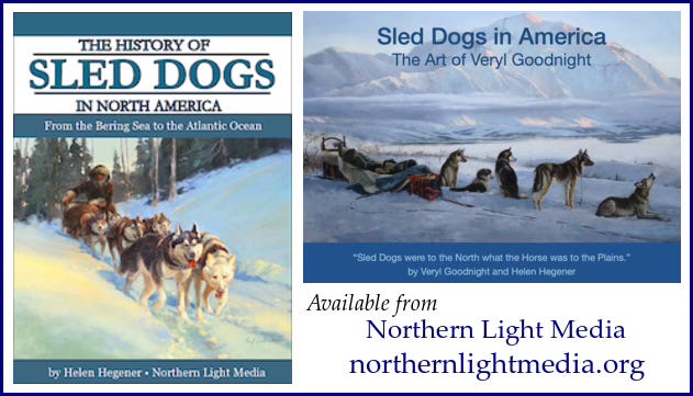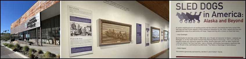 Veryl and I helped curate the unique exhibit, which showcased not only the paintings by Veryl, but included the history behind the paintings which I researched for my 2023 book, The History of Sled Dogs in North America. Veryl and I also co-authored a book based on her paintings and the exhibit, Sled Dogs in America: The Art of Veryl Goodnight. Both are available at my website or from any bookseller.